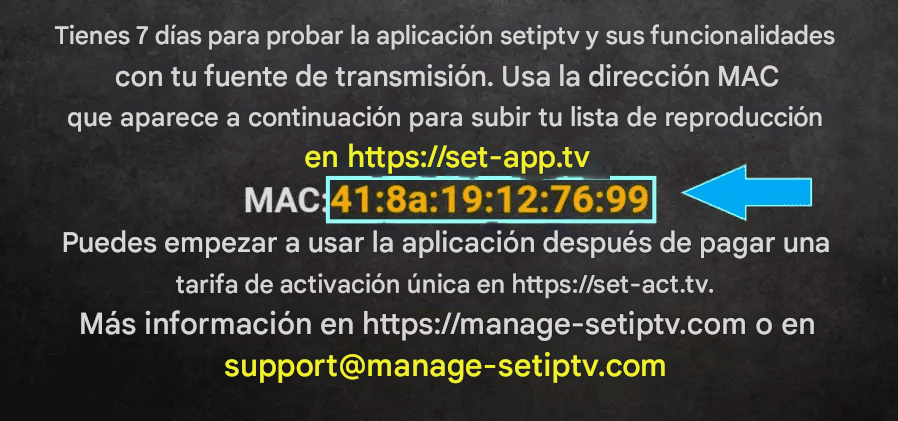 Paso 1: Envíanos la dirección MAC de tu MAG por WhatsApp, correo electrónico o chat en vivo.